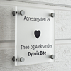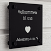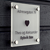 15 x 15cm 8 mm tykk Trykkes på frosty, klar, hvit eller svart akryl Miljøvennlig skilt som er 100% resirkulert Du finner 12 design forslag i Designeren